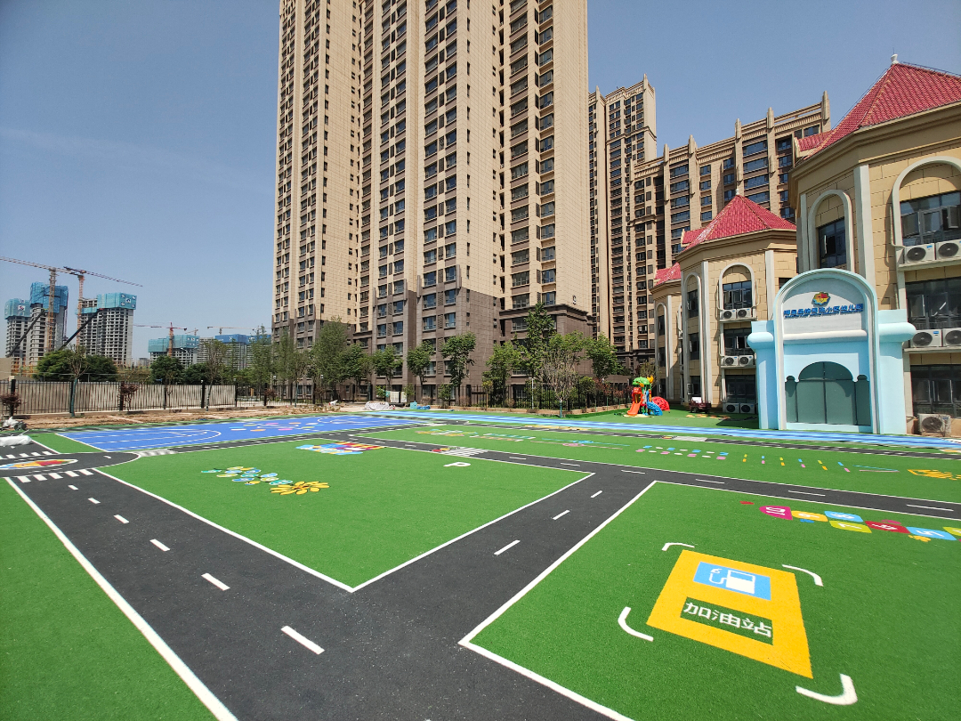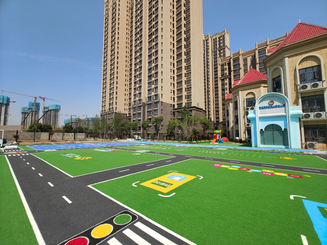 一园一定制,一园一特色,优发娱乐·(国际)官方网站专门为狮呈品格幼儿园定制了一些体适能图案,公路斑马线、红绿灯的设计,能够很好的帮助幼儿适应社会环境,与学校办学理念“在游戏中学习知识”高度契合,帮助幼儿提高环境感知能力。