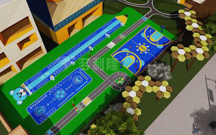 小熊铅笔跑道的设计重点凸显对孩子们身体健康及体育教育的重视。