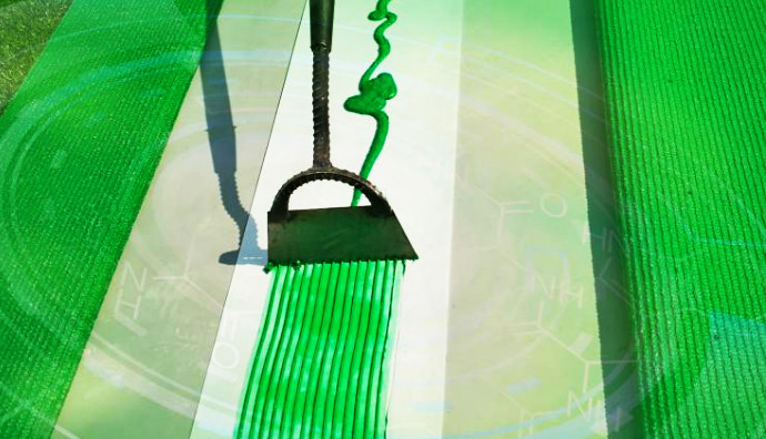 在草坪粘接过程中,禁止草坪与基础直接粘接,草坪与水泥地热胀冷缩系数差异大,特别是铺装后经过冬天热胀冷缩,使用会造成严重开缝(3-5cm),易产生鼓包等质量问题。